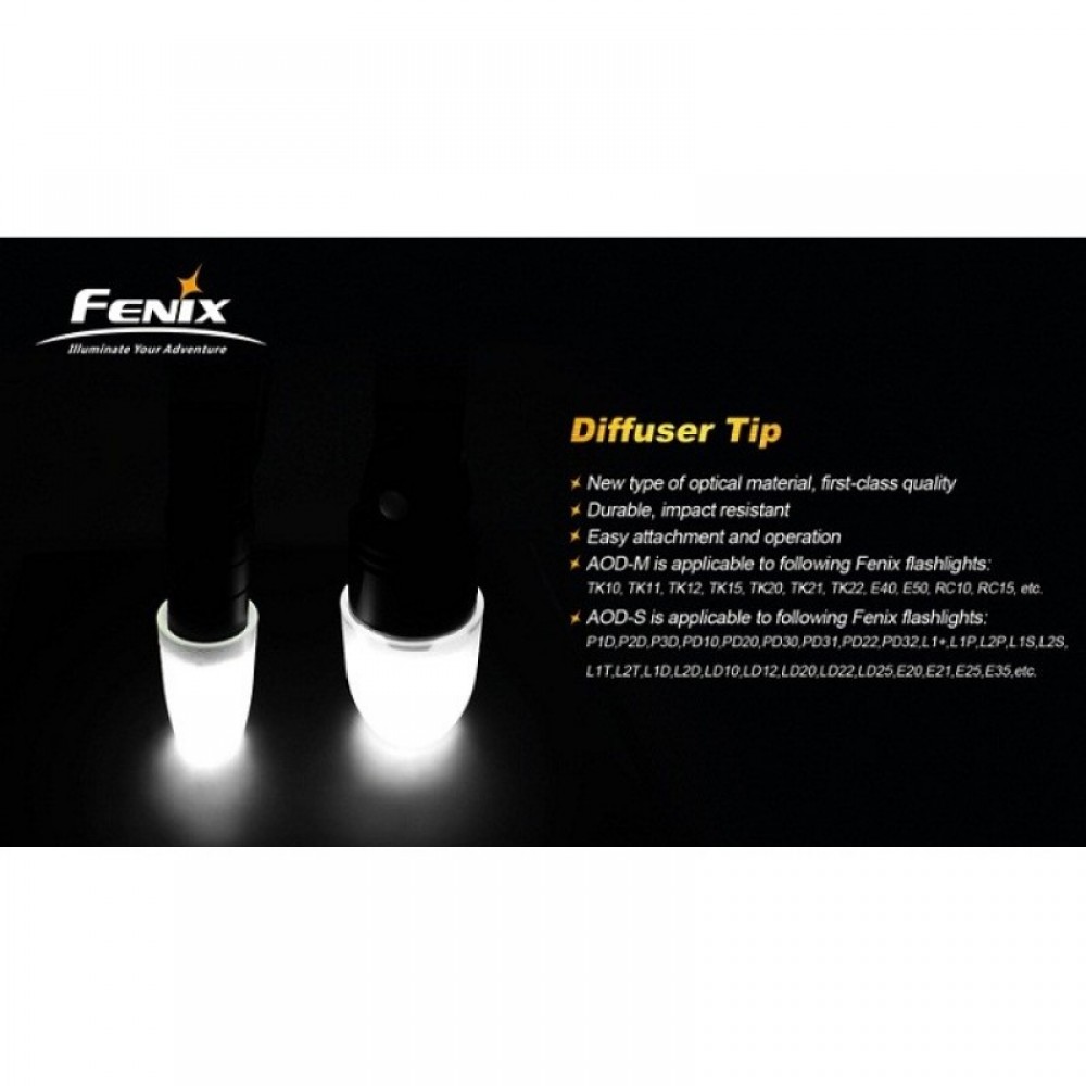 Фильтр Fenix AOD-S подходит ко многим фонарям Fenix моделей: E20, E21, E25, E35, E35UE, L1, L1P, L2P, L1S, L2S, L1T, L2T, L1D, L2D, LD10, LD12, LD20, LD22, LD25, P1D, P2D, P3D, PD10, PD20, PD30, PD31, PD22, PD32, PD35, PD35tac, UC30, UC35, UC40, UC40UE. Более подробную информацию о диффузионном фильтре Fenix AOD-S и о том, с какими моделями фонарей он работает, всегда можно узнать, проконсультировавшись с менеджерами интернет-магазина.