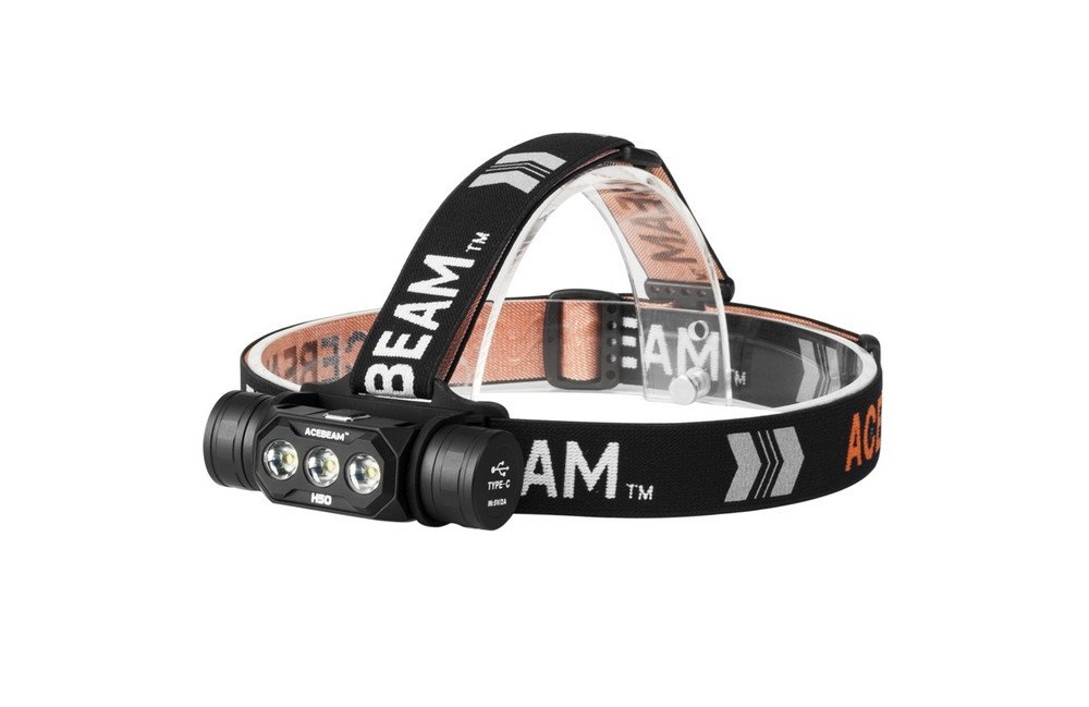Профессиональный налобный фонарь высокой мощности AceBeam H50 от компании AceBeam (Айсбим) на трех с..