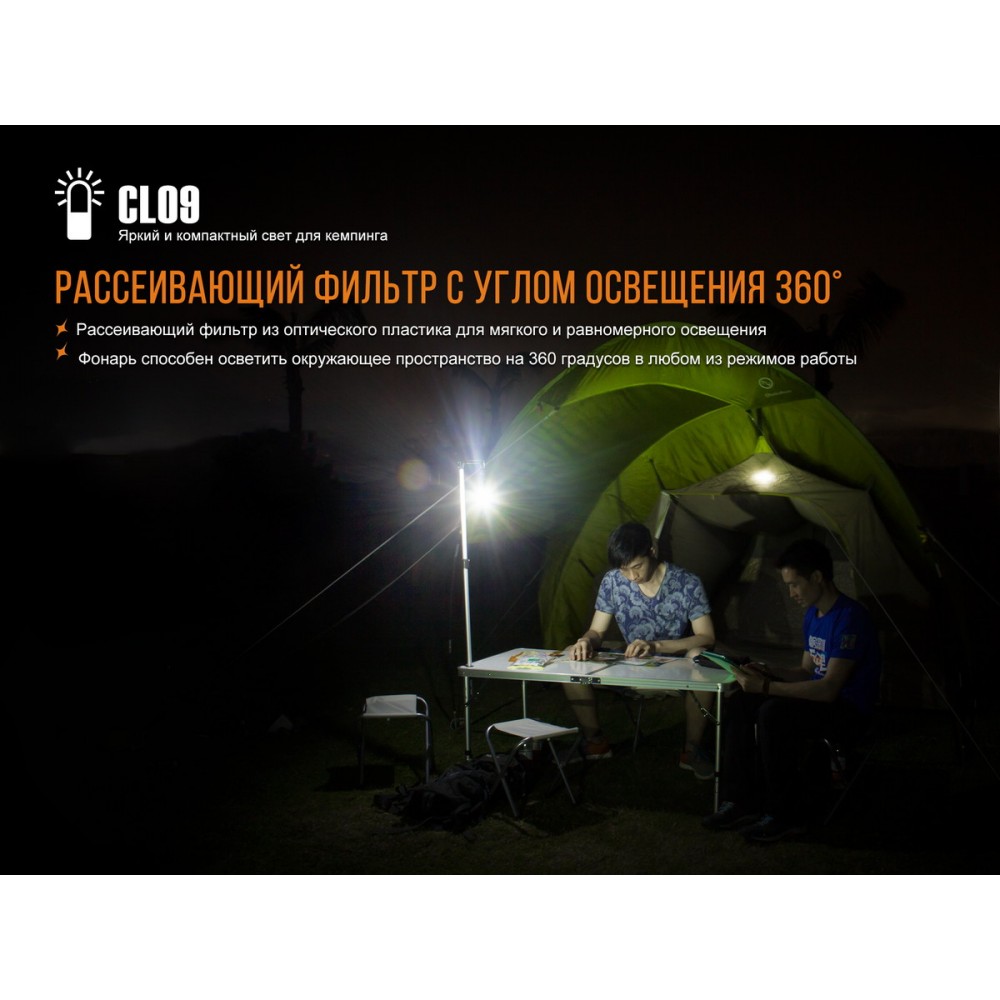 Корпус модели Fenix CL09 выполнен из авиационного алюминиевого сплава, а его рассеивающая линза &mdash из оптического пластика. Оба материала очень прочные, не поддаются коррозии, отлично приспособлены к различным условиям эксплуатации фонаря. Помимо того, модель Fenix CL09 на самом высоком уровне защищена от воды (эта защита соответствует стандарту IP-68).