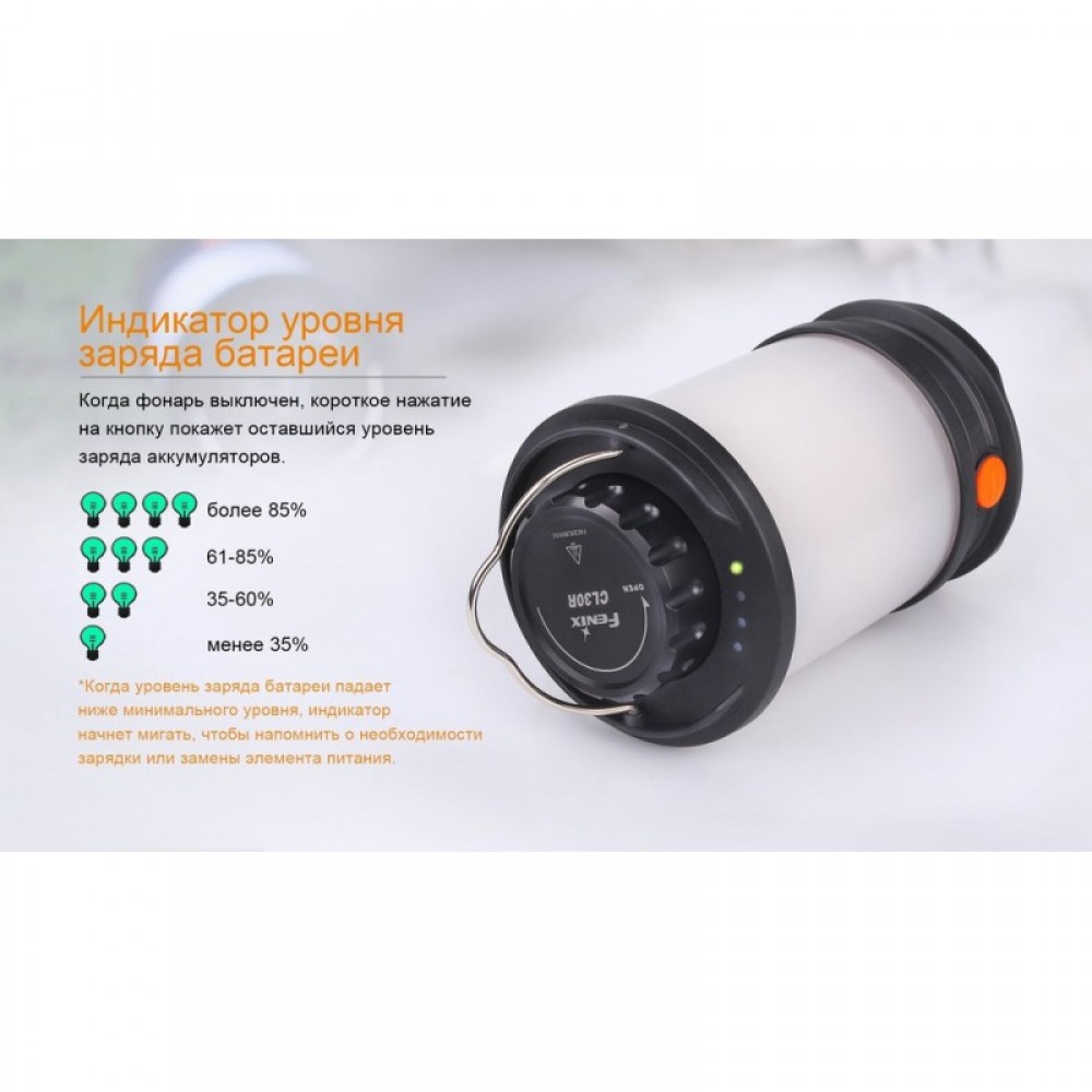 Корпус фонаря сделан плоским снизу, чтобы его можно было просто поставить на стол или камень. CL30R также можно подвесить, используя кольцо из металла на верхней части корпуса. Помимо того, в дне фонарика имеется резьба для его крепления на штатив. Так что использовать этот кемпинговый фонарь можно тем способом, который будет для вас удобнее. Кроме того, он подойдет для освещения туристической стоянки или места стоянки рыбаков и охотников круглый год. Этот фонарь отлично защищен от влаги (IPX-7 стандарт) и хорошо приспособлен для работы во время морозов.