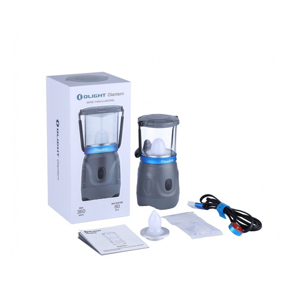 Кемпинговый светодиодный фонарь Olight Olantern Basalt Grey от компании Олайт мощностью 360 люмен с цветовой температурой светодиодов Warm или White. Встроенный в корпус фонаря магнитный разъем для зарядки фонаря кабелем Olight MCC3 от сети 220 В. Встроенные 4 шт. Li-ion аккумулятор 3.7V 18500 емкостью 1900 mAh обеспечивает 80 часов в минимальном режиме яркости.