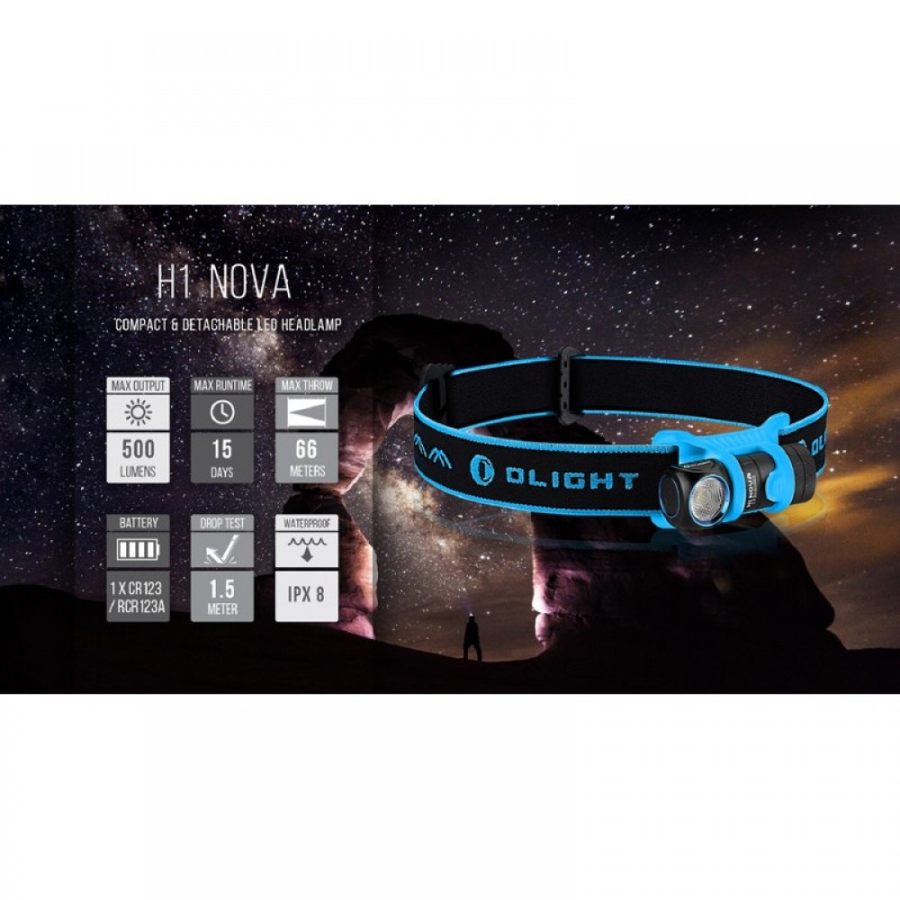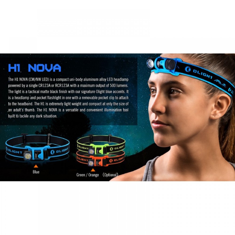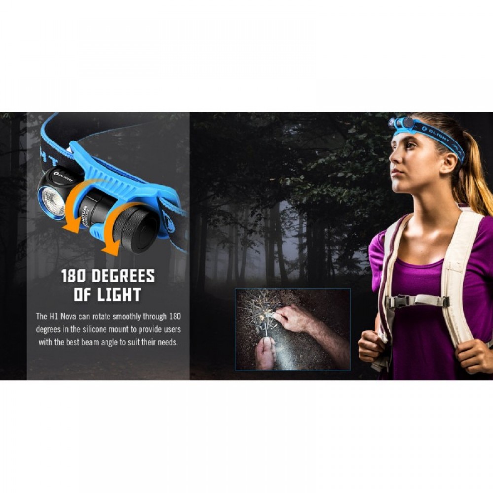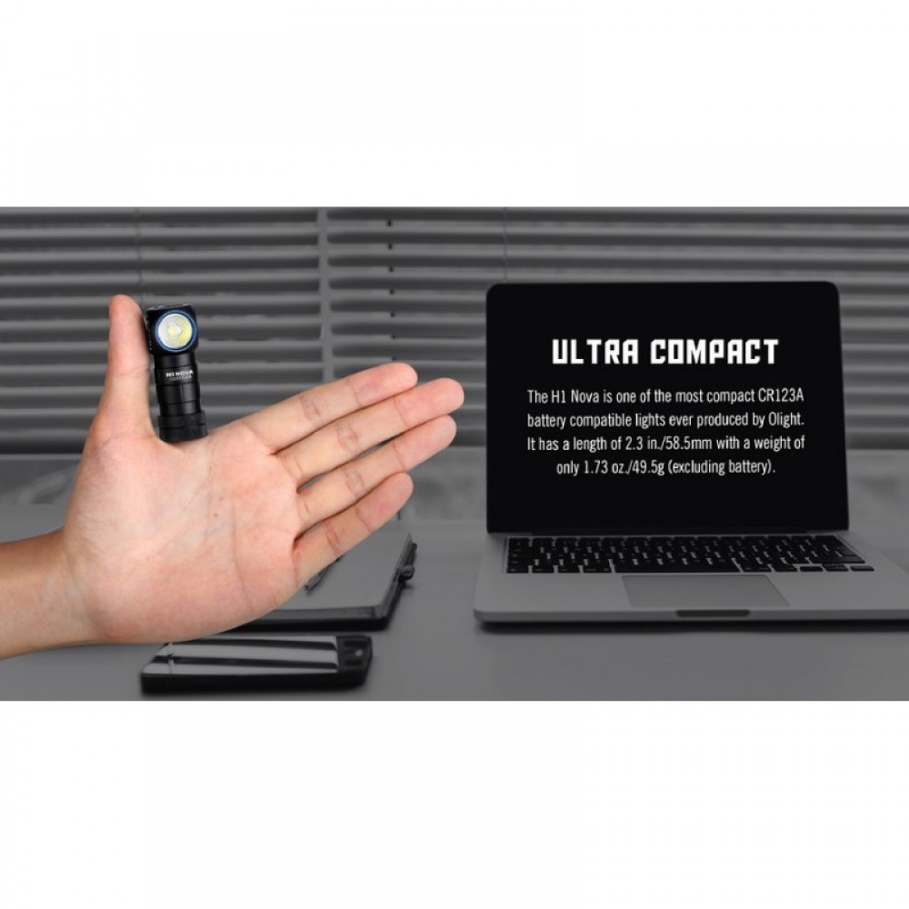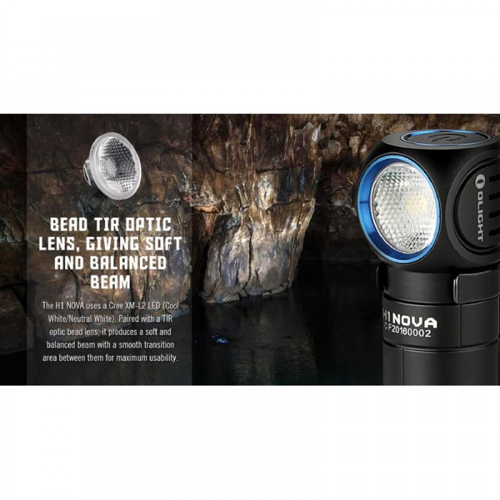 Новинка компании ОЛАЙТ — высококачественный компактный налобный фонарь «Г»-образного типа Olight H1 Nova выполненный на светодиоде Cree XM-L2 в сверхпрочном и водонепроницаемом корпусе с питанием CR123A / 16340. При своем малом размере и весе, фонарь дает отличную яркость центрального пятна и приятную равномерную засветку. TIR оптика позволила уменьшить габариты фонаря, исключив отражатель из головы: