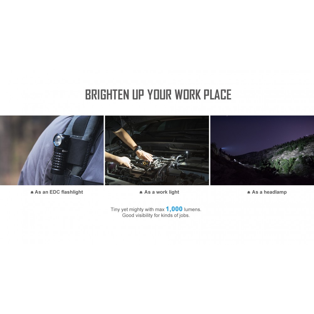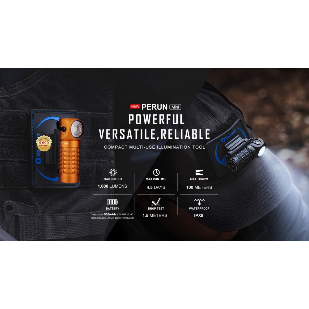 Высококачественный налобный фонарь Perun Mini Black от компании Olight (Олайт) с магнитной usb зарядкой выполненный на светодиоде Cree в сверхпрочном и водонепроницаемом корпусе мощностью 1000 люмен.