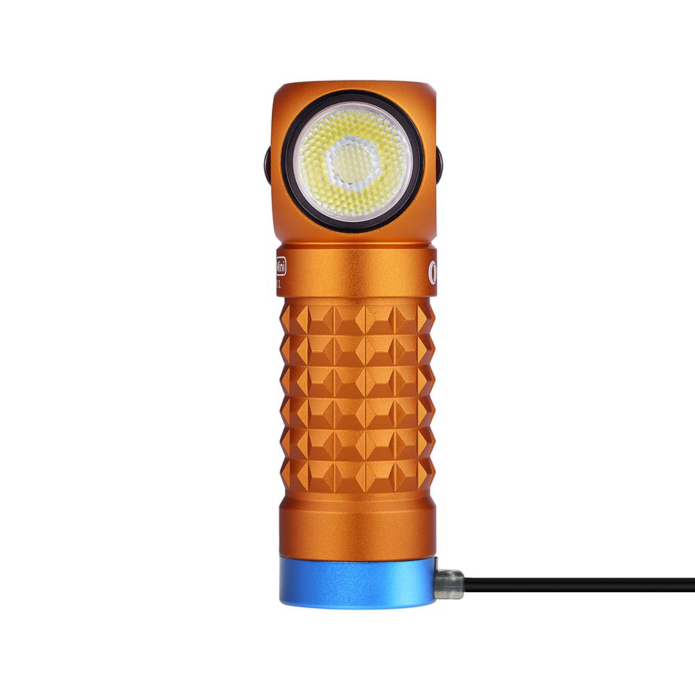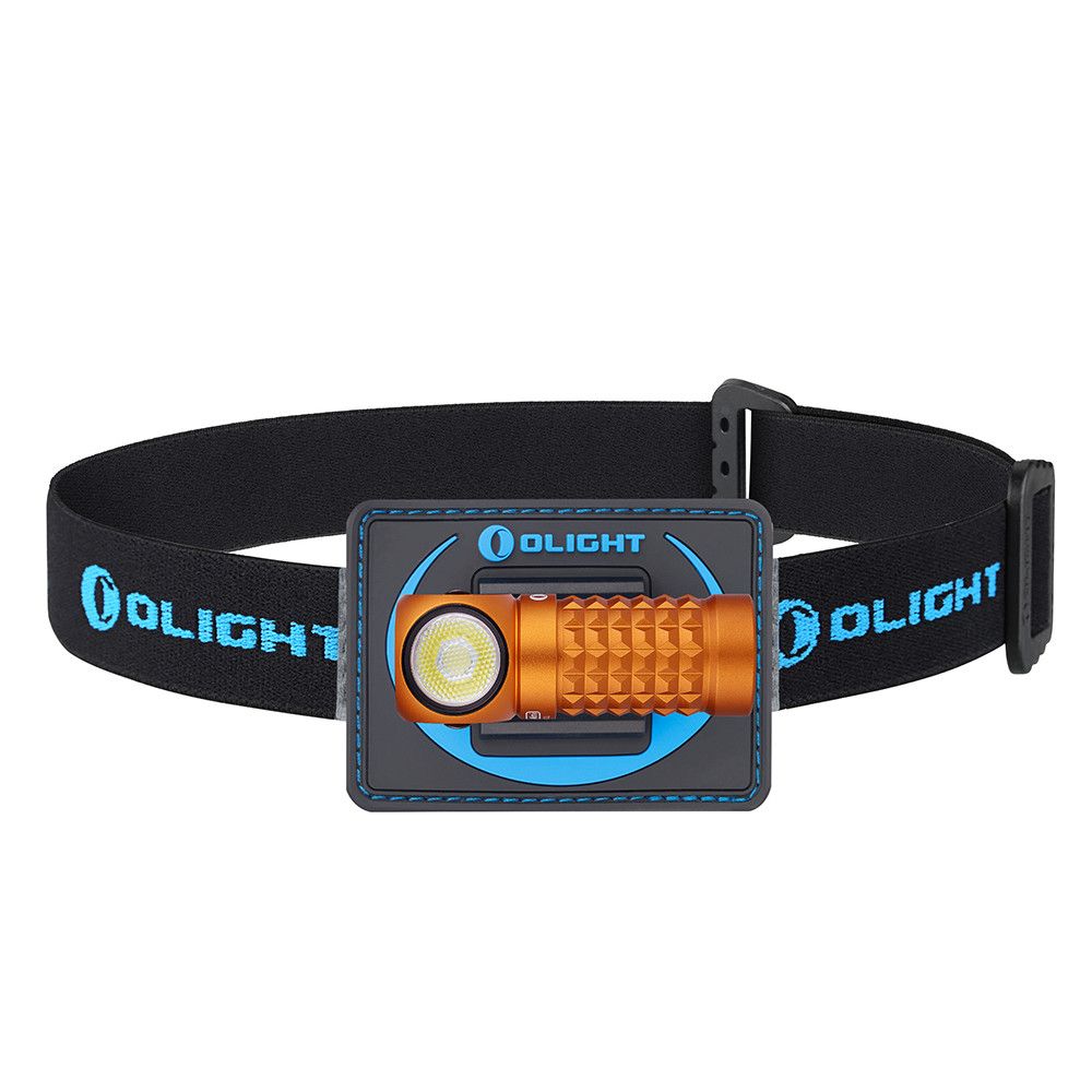 Высококачественный налобный фонарь Perun Mini Orange от компании Olight (Олайт) с магнитной usb зарядкой выполненный на светодиоде Cree в сверхпрочном и водонепроницаемом корпусе мощностью 1000 люмен.