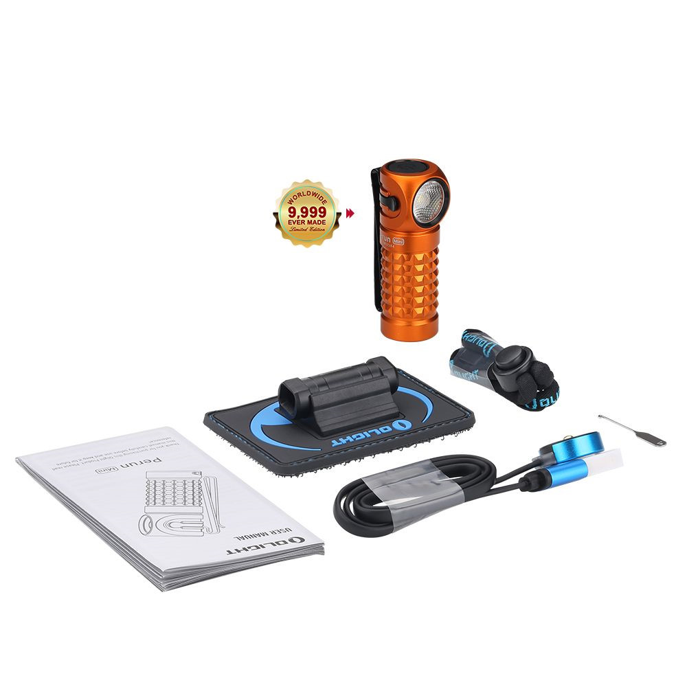 Комплектация: Фонарь Olight Perun Mini Orange, аккумулятор Li-ion 550mAh 3.7V IMR16340, магнитным USB кабелем Olight MMC, клипса, пин-инструмент, упаковка (см. фото).