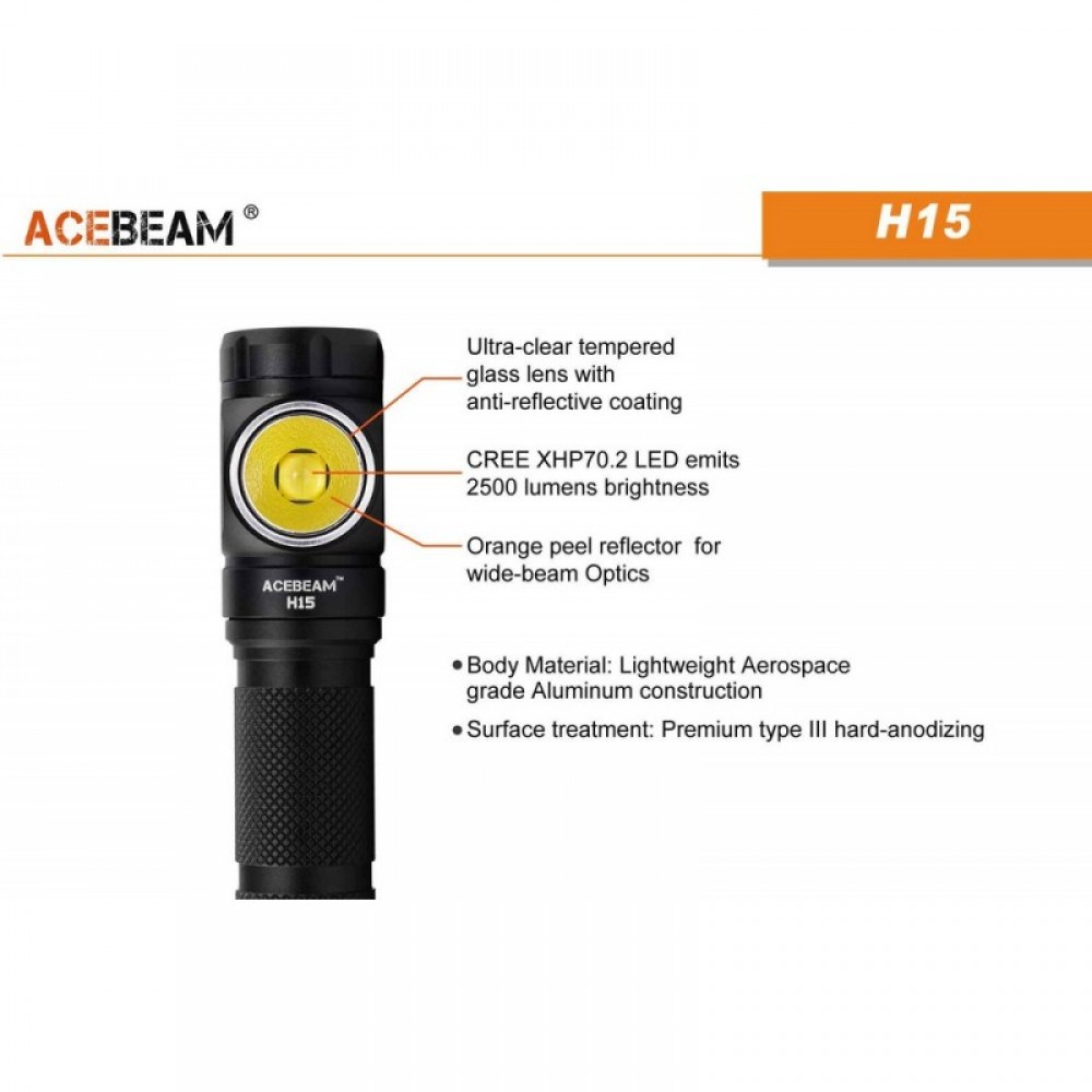 • Acebeam H15 NW - диод Cree XH-P 70.2NW Нейтрально-белый (≈5000К)