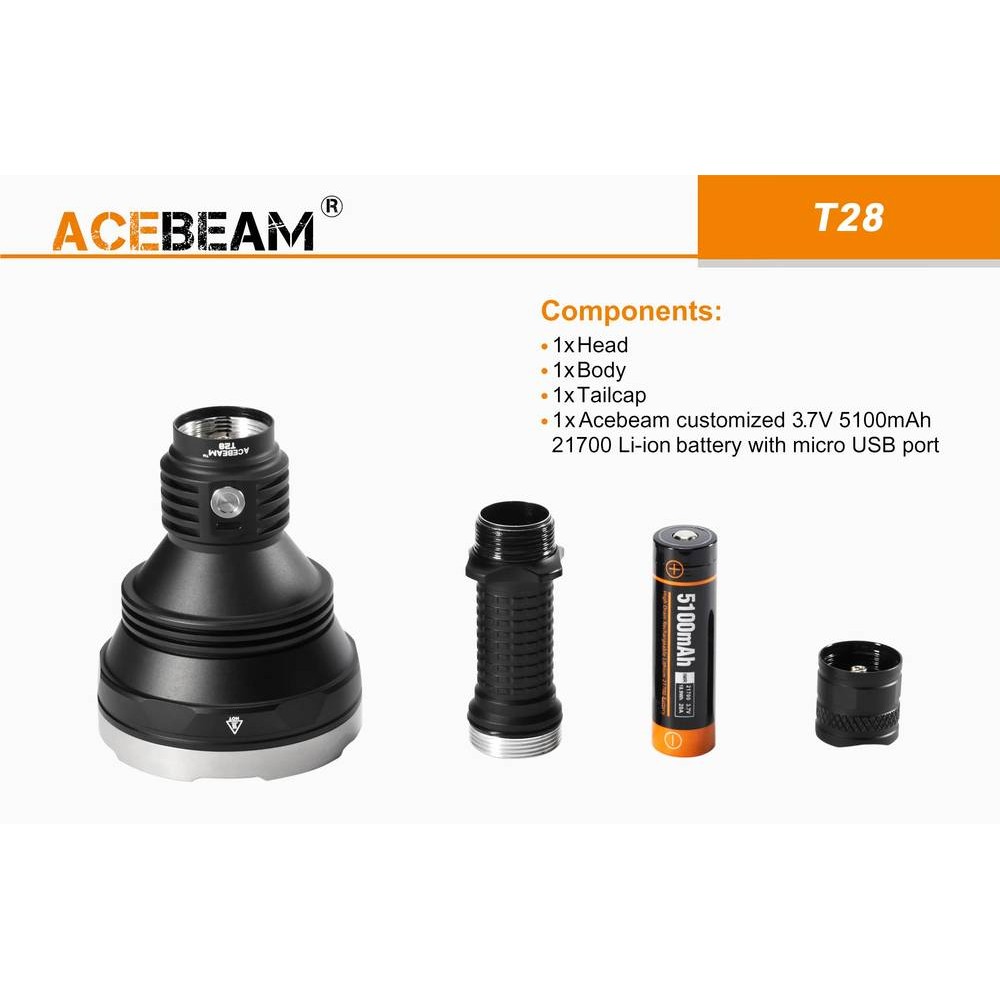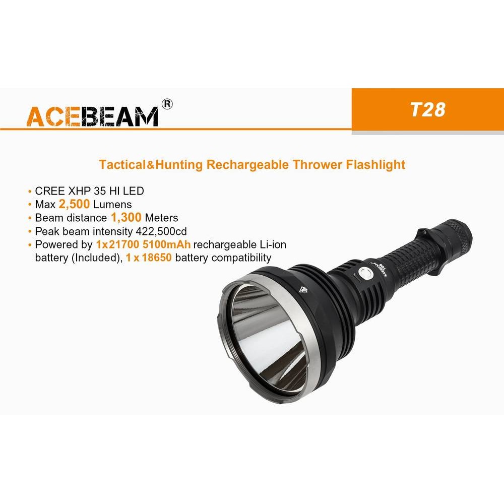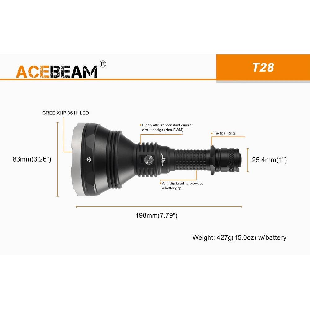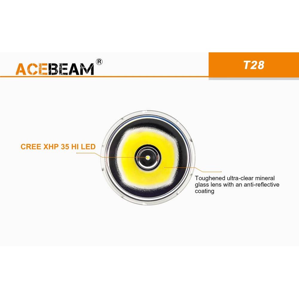 Тактический подствольный фонарь AceBeam T28 Thrower от компании AceBeam (Айсбим) - обновленная модель фонаря AceBeam T27, с увеличенным диаметром отражателя. Фонарь работает на светодиоде Cree XH-P 35 HI, выдающий 2500 люмен и дальность светового потока узким лучом до 1300 метров. Подствольный тактический фонарь T28 можно использовать как поисковый, подсвечивать объекты на очень далекие расстояния.