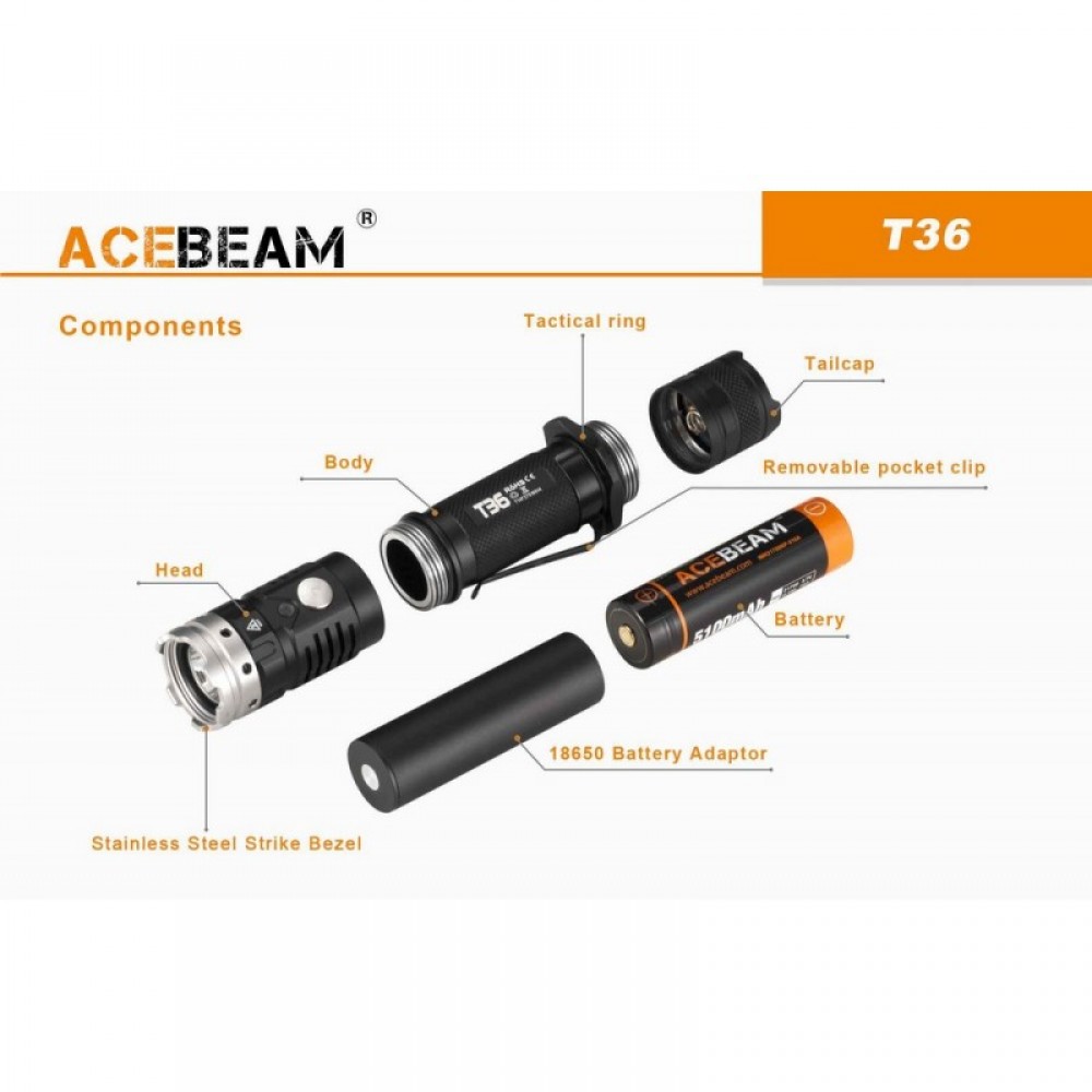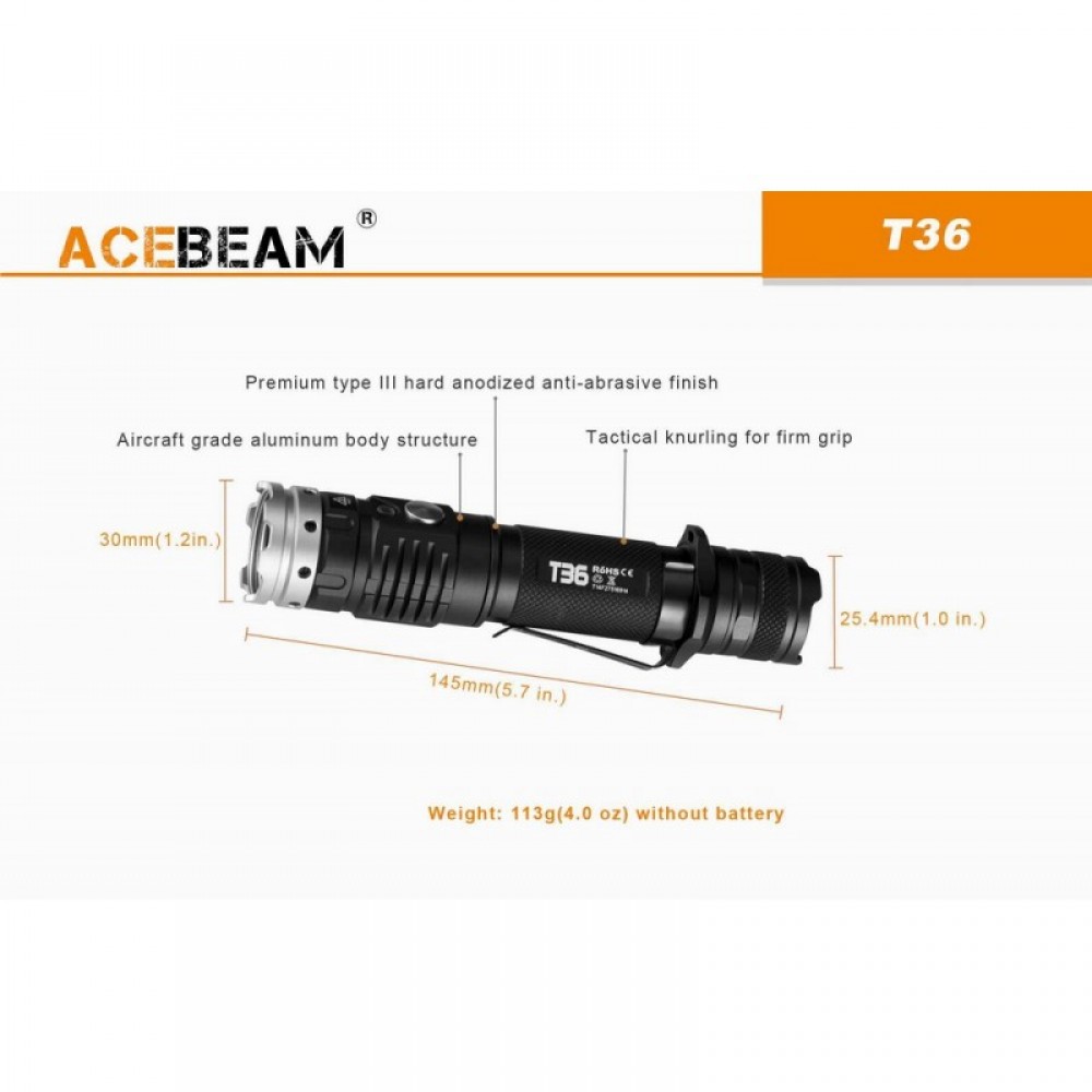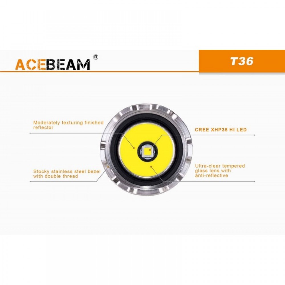 - Acebeam T36 NW - диод Cree XH-P 35 HI NW Нейтрально-белый (≈5000К)