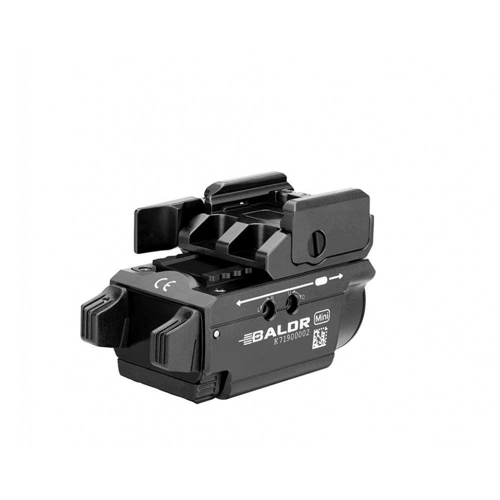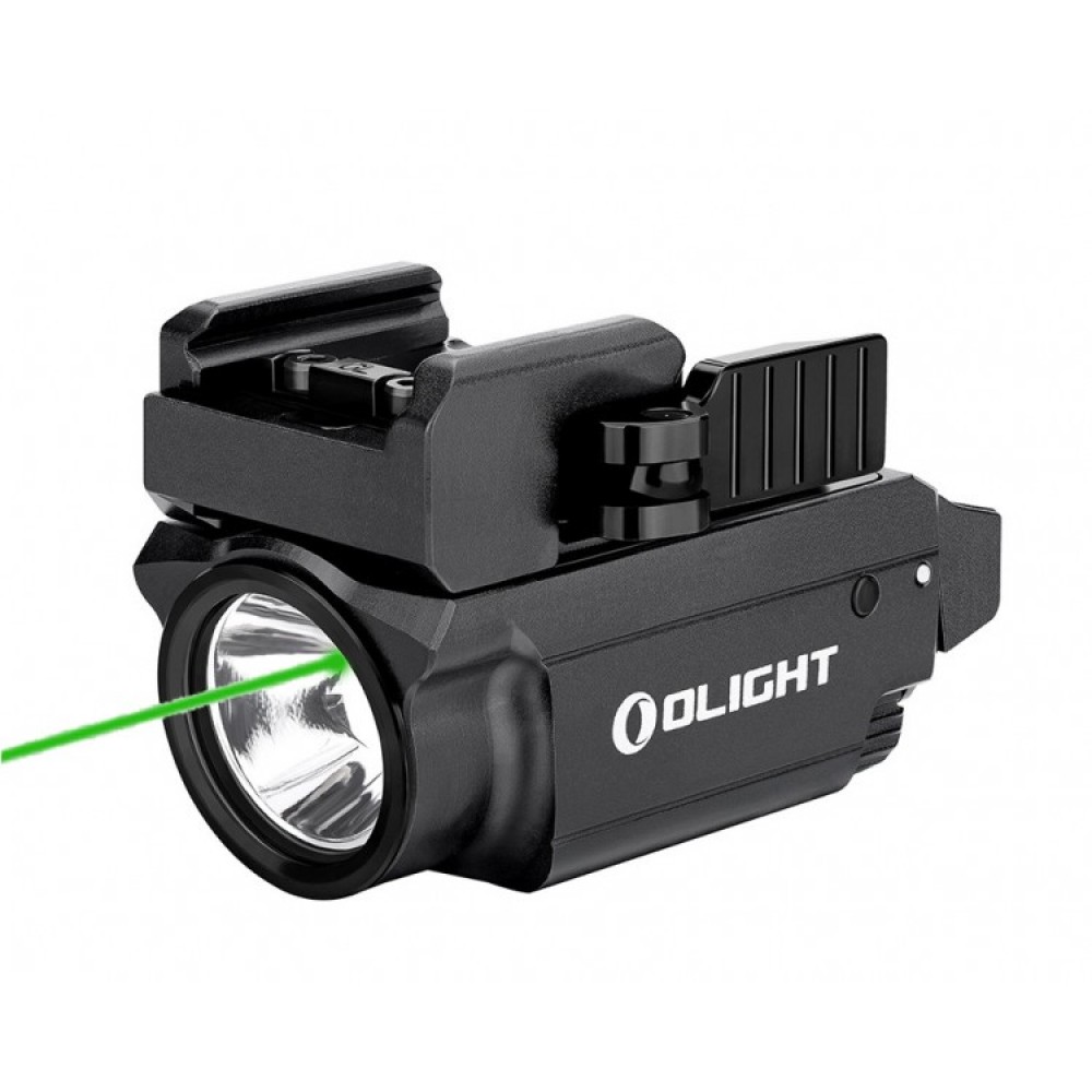 Пистолетный компактный фонарь Olight Baldr Mini новый фонарь от компании Olight (Олайт) мощностью 600 люмен с дополнительным лазерным целеуказателем зеленого цвета. Фонарь работает на светодиоде XP-L HD американской фирмы CREE, дальность светового потока составляет 130 метров по ANSI FL1 с интенсивностью 4225 Cd. Кнопки управления сделаны с двух сторон, что позволяет пользоваться как правше, так и левше. Встроенное быстросъемное крепление на планку Weawer и Picatinny / Mid-std 1913 с подвижной базой позволяет закрепить фонарь на всех возможных пистолетах с планкой Weawer.