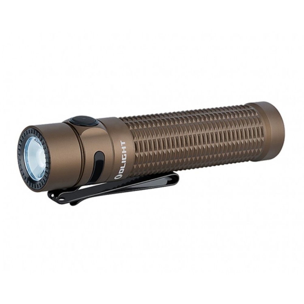 Тактический светодиодный фонарь Olight Warrior Mini Desert Tan от компании Olight (Олайт) на мощном светодиоде Luminus SST-40 Cool white с повышенной цветопередачей CRI 70. Максимальная мощность светового потока достигает 1500 люмен. Warrior Mini поставляется с Li-ion аккумулятором 18650 3500 мАч и переносным магнитным USB кабелем 1500 мА для подзарядки фонаря от широко доступных источников питания USB. Фонарь оснащен прогрессивной акриловой TIR оптикой, которая наиболее эффективно распределяет световой поток светодиода на дистанцию до 190 метров в максимальном режиме света.