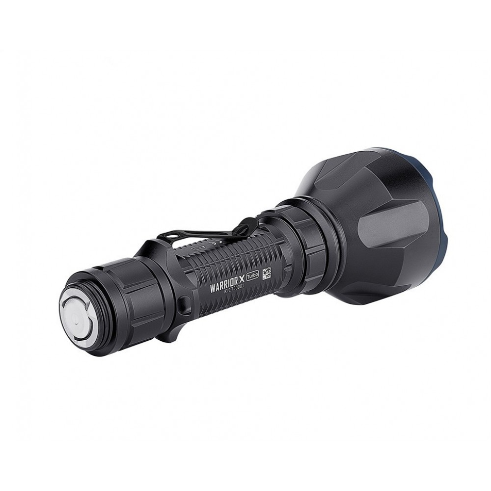 Подствольный тактический дальнобойный фонарь OlightWarrior X Turbo от компании (Олайт) работает на светодиоде Osram KP CSLPM1.F1 Cool white мощностью 1100 люмен и дальностью светового потока 1000 метров. Фонарь поставляется с высокотоковым аккумулятором Olight ORB-217C50 5000 мАч и заряжается переносным магнитным USB кабелем Olight MMC3 Magnetic током 2 Ампера, который так же идет в комплекте к фонарю. Warrior X Turbo может использоваться как подствольный фонарь для охоты с оружием в ночное время суток при помощи магнитной быстросъемной выносной дистанционной кнопки Olight RWX.