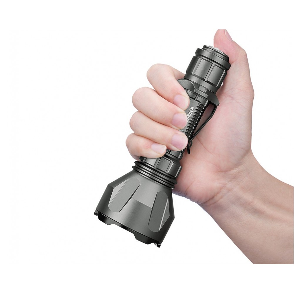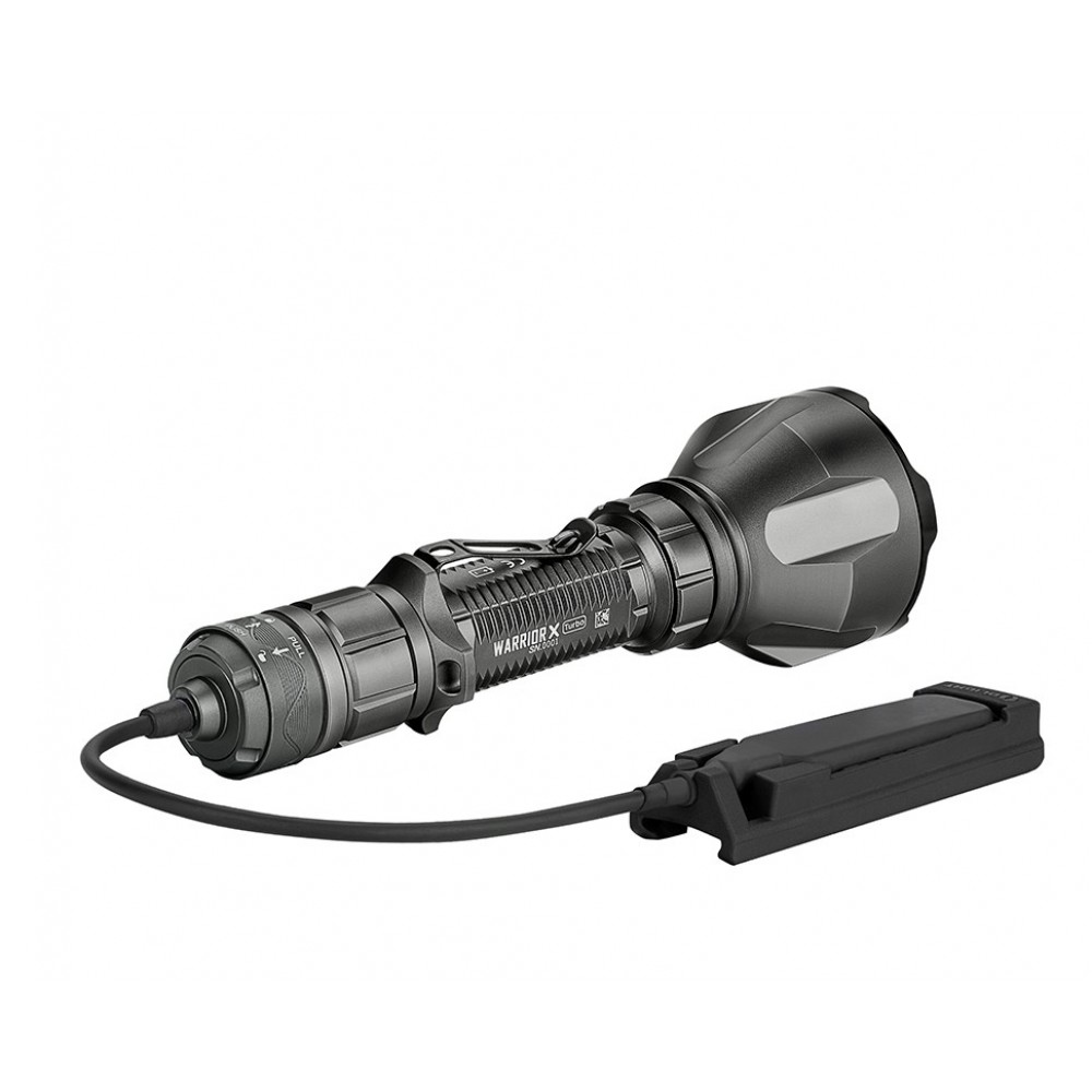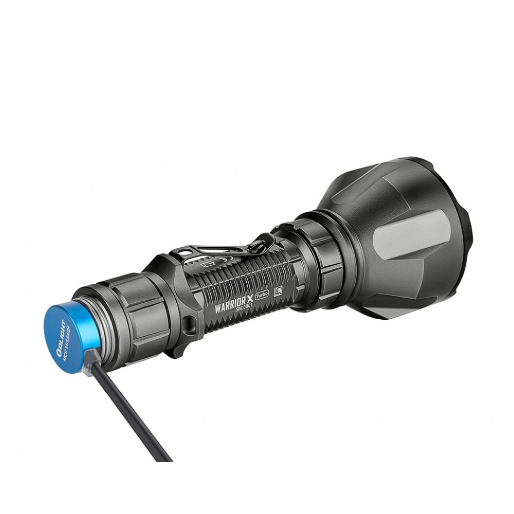 Подствольный тактический дальнобойный фонарь OlightWarrior X TurboGunmetal Grey лимитированной серии от компании (Олайт) работает на светодиоде Osram KP CSLPM1.F1 Cool white мощностью 1100 люмен и дальностью светового потока 1000 метров. Фонарь поставляется с высокотоковым аккумулятором Olight ORB-217C50 5000 мАч и заряжается переносным магнитным USB кабелем Olight MMC3 Magnetic током 2 Ампера, который так же идет в комплекте к фонарю. Warrior X Turbo может использоваться как подствольный фонарь для охоты с оружием в ночное время суток при помощи магнитной быстросъемной выносной дистанционной кнопки Olight RWX.