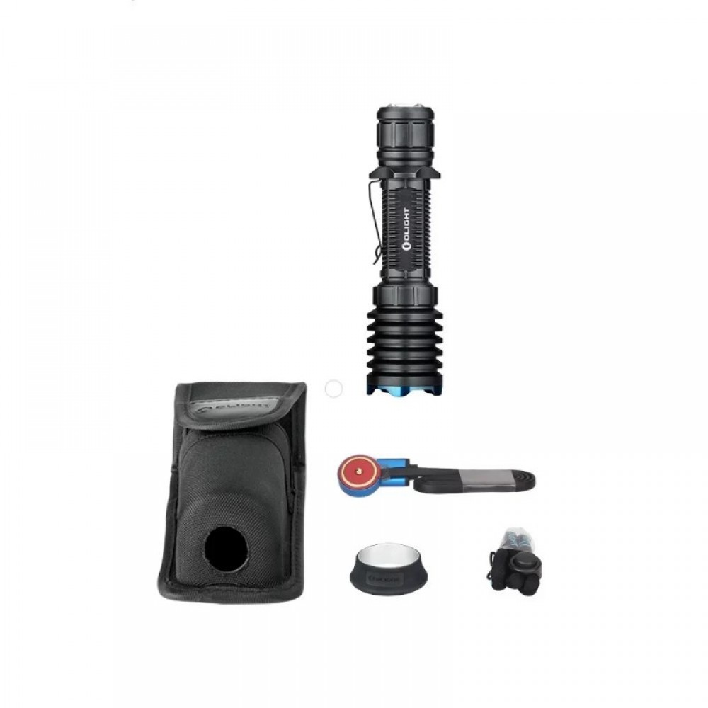 Комплектация: Фонарь Olight Warrior X Pro, аккумулятор Li-ion 21700 Olight ORB-217C50 5000 mAh, зарядное магнитное USB устройство Olight MCC3 Magnetic, чехол Olight, клипса, резиновый грипп упор, упаковка.