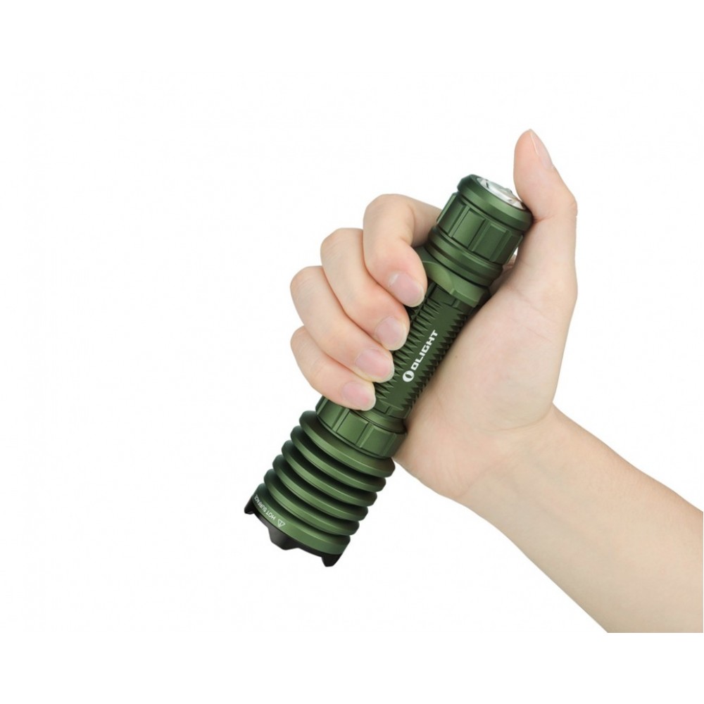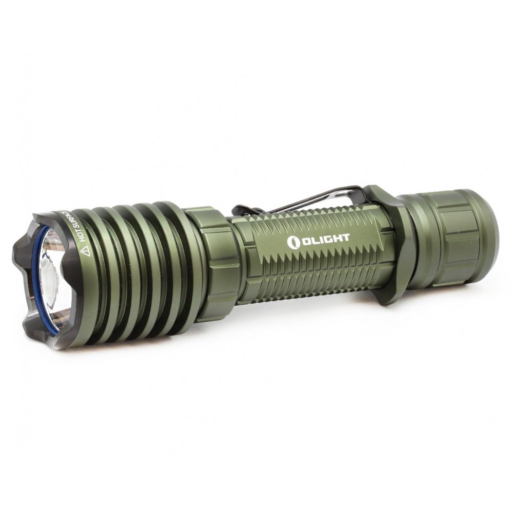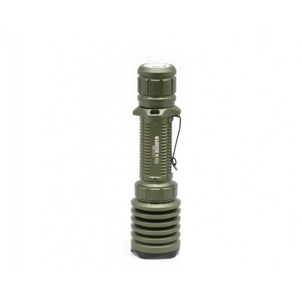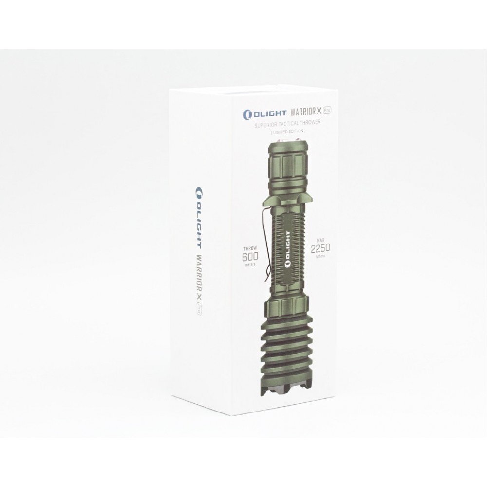 Подствольный тактический фонарь Olight Warrior X Pro OD Green от компании (Олайт) работает на светодиоде Cree XH-P 35 HI Neutral white мощностью 2250 люмен и дальностью светового потока 600 метров. Фонарь поставляется с высокотоковым аккумулятором Olight ORB-217C50 5000 мАч и заряжается переносным магнитным USB кабелем Olight MMC3 Magnetic током 2 Ампера, который так же идет в комплекте к фонарю. Warrior X Pro может использоваться как подствольный фонарь для охоты с оружием в ночное время суток при помощи магнитной быстросъемной выносной дистанционной кнопки Olight RWX, которая приобретается отдельно.