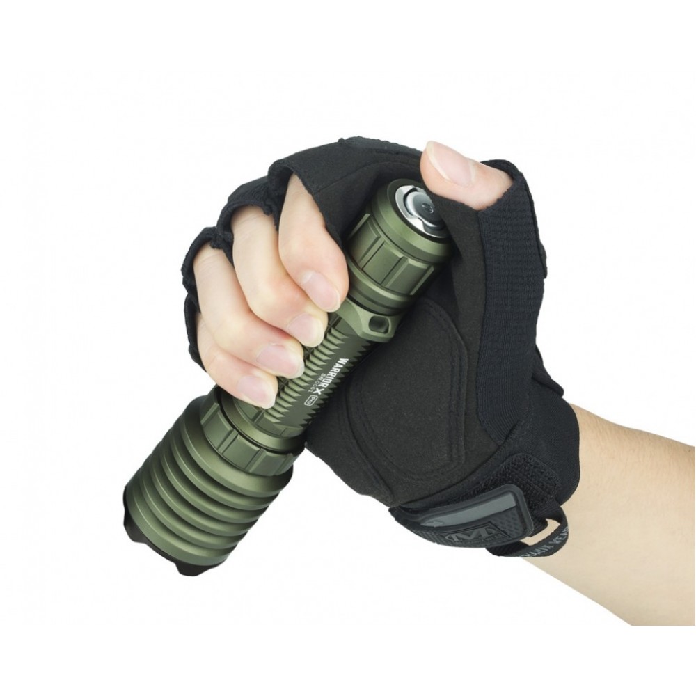 - Warrior X Pro имеет тихий выключатель в торцевой части фонаря, включает фонарь с минимальным шумом.