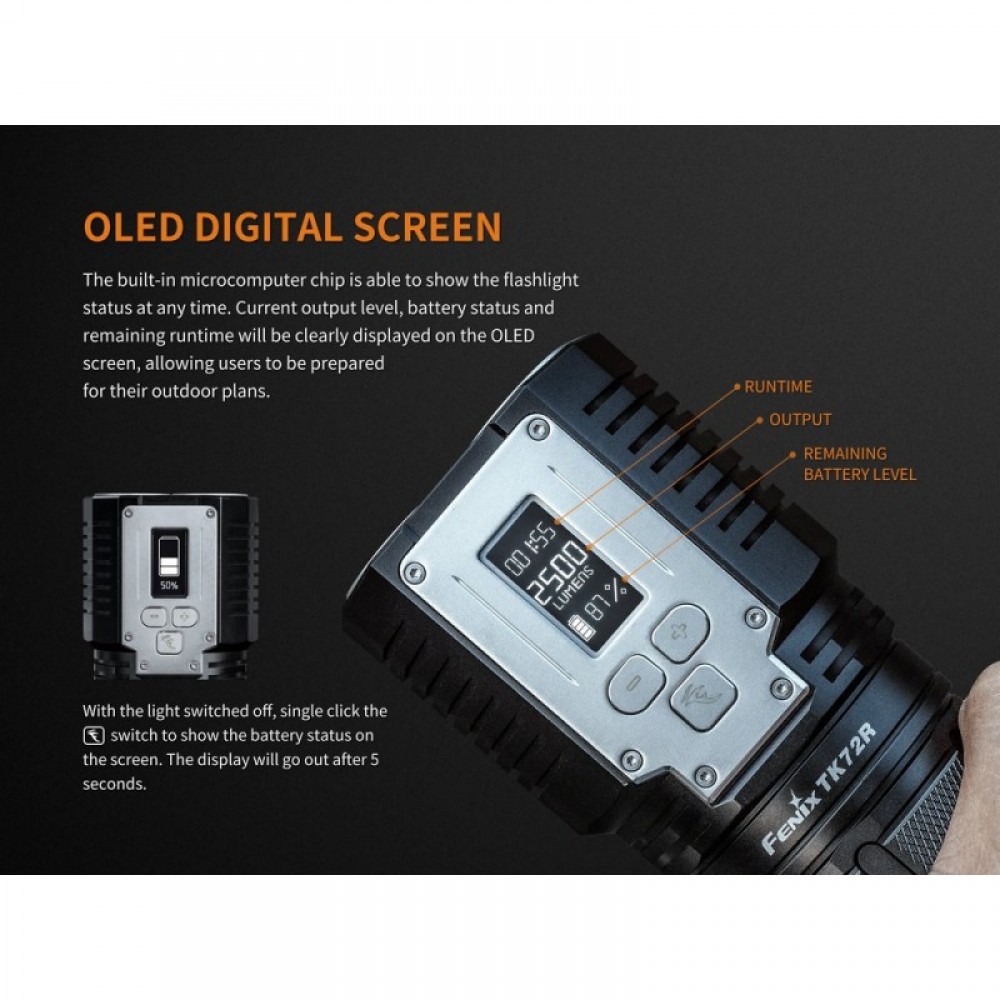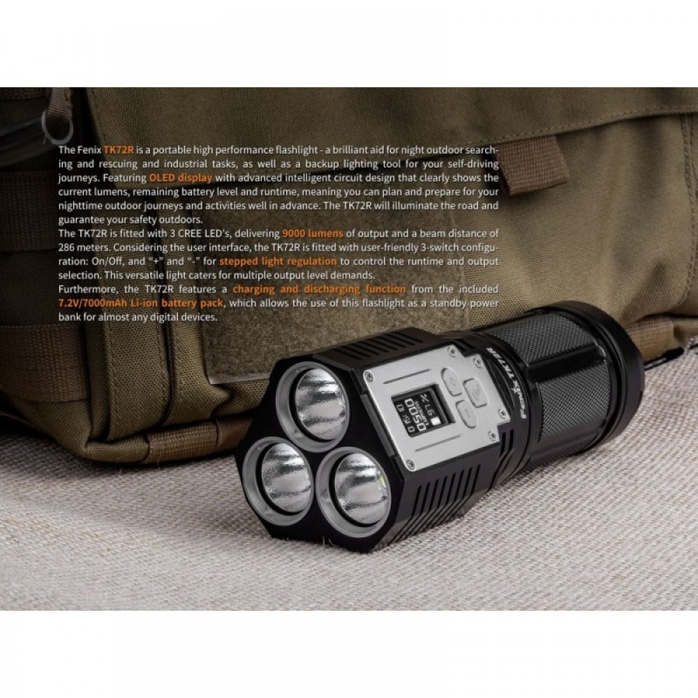 Сверхмощный карманный фонарь Fenix TK72R является отличным выбором для проведения поисковых и спасательных операций, патрулирования территории и ряда других задач, где может понадобиться по-настоящему яркий источник освещения, который можно носить с собой в кармане.