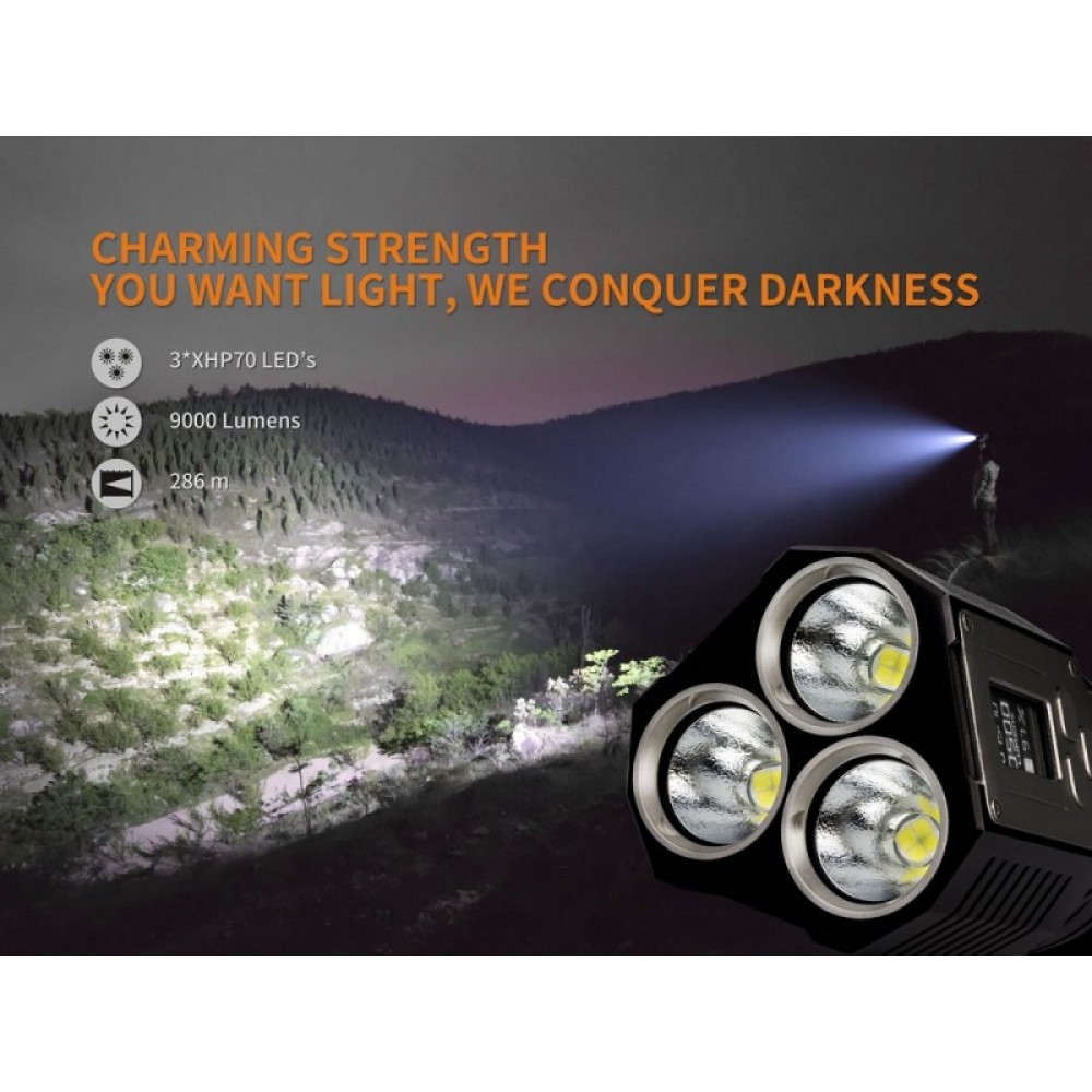 Модель TK72R оснащена тремя светодиодами Cree XHP70. Каждый из них имеет отдельное посадочное место, однако, все они работают синхронно. Это позволяет создавать направленный луч света с яркостью до 9 000 люмен и дальностью до 286 метров.