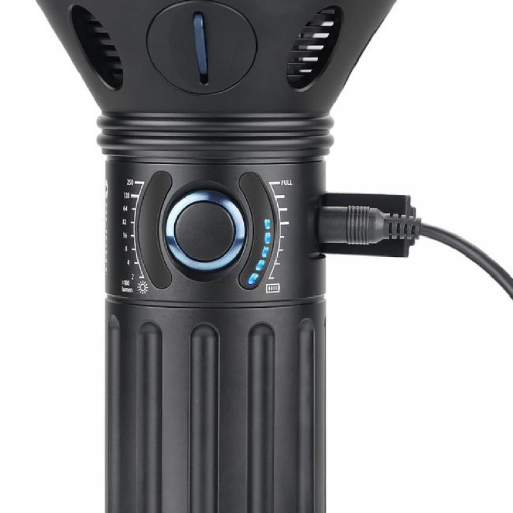 - Аккумуляторный батарейный блок емкостью 6000 mAh обеспечивает работу фонаря на минимальном режиме до 27 часов.