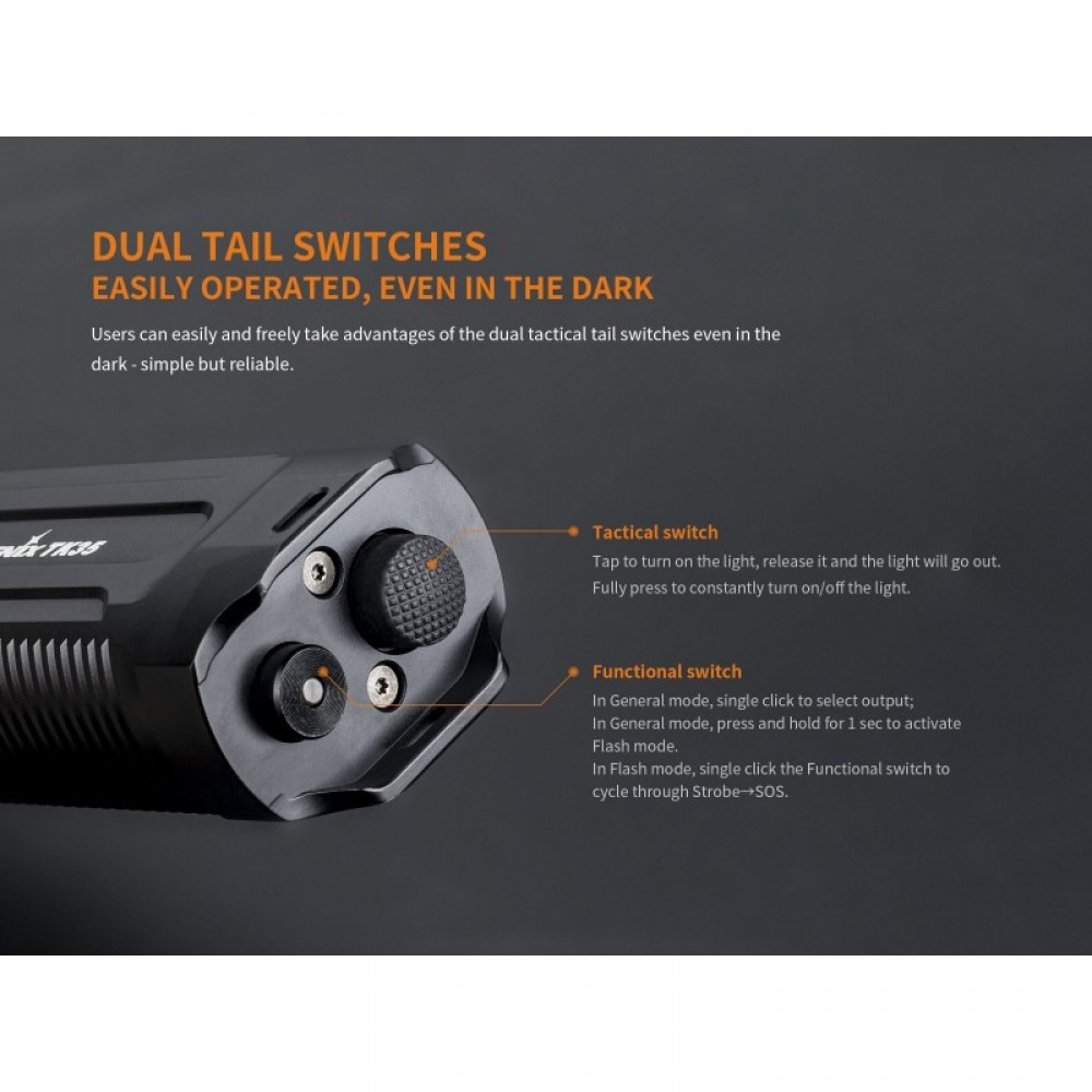 Одним из главных достоинств модели Fenix TK35 (2018) является отличная защита от пыли и влаги, которая соответствует международному стандарту IP68. Это означает что вы сможете использовать представленный фонарь прожектор в любую погоду и даже под водой, на глубине до двух метров.
