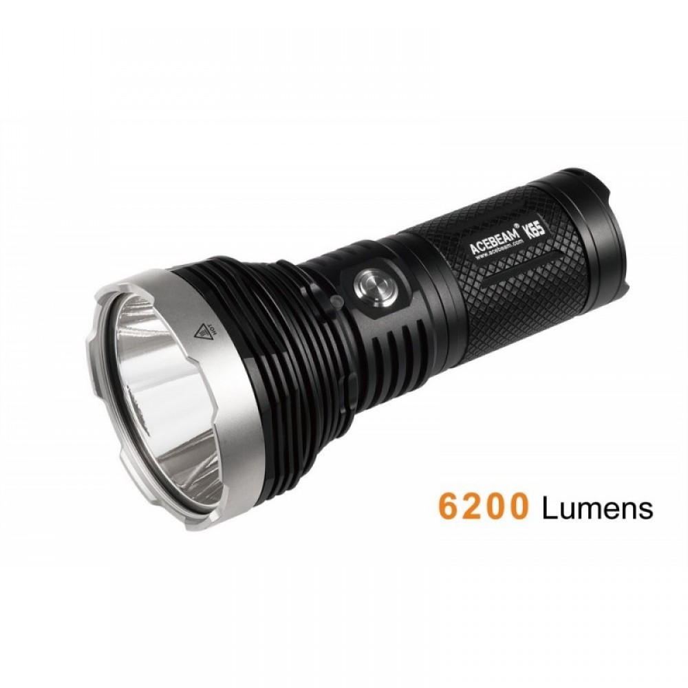 Мощный поисковый фонарь AceBeam K65 от компании AceBeam (Айсбим) на новом светодиоде Cree XH-P 70.2 De-Domed - дедомленный светодиод без линзы, за счет чего фонарь светит на 1014 метров. Цифровоя стабилизации постоянной яркости и система интеллектуального термоконтроля светодиода обеспечивают оптимальные характеристики мощности для проведения продолжительных поисковых и спасательных работ. Цветовая индикация уровня заряда аккумуляторов позволяет узнать о необходимости зарядки фонаря.