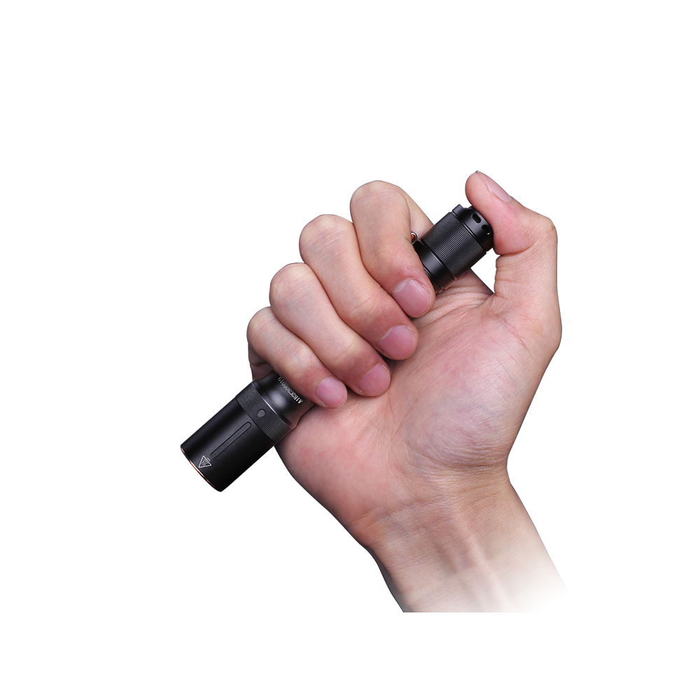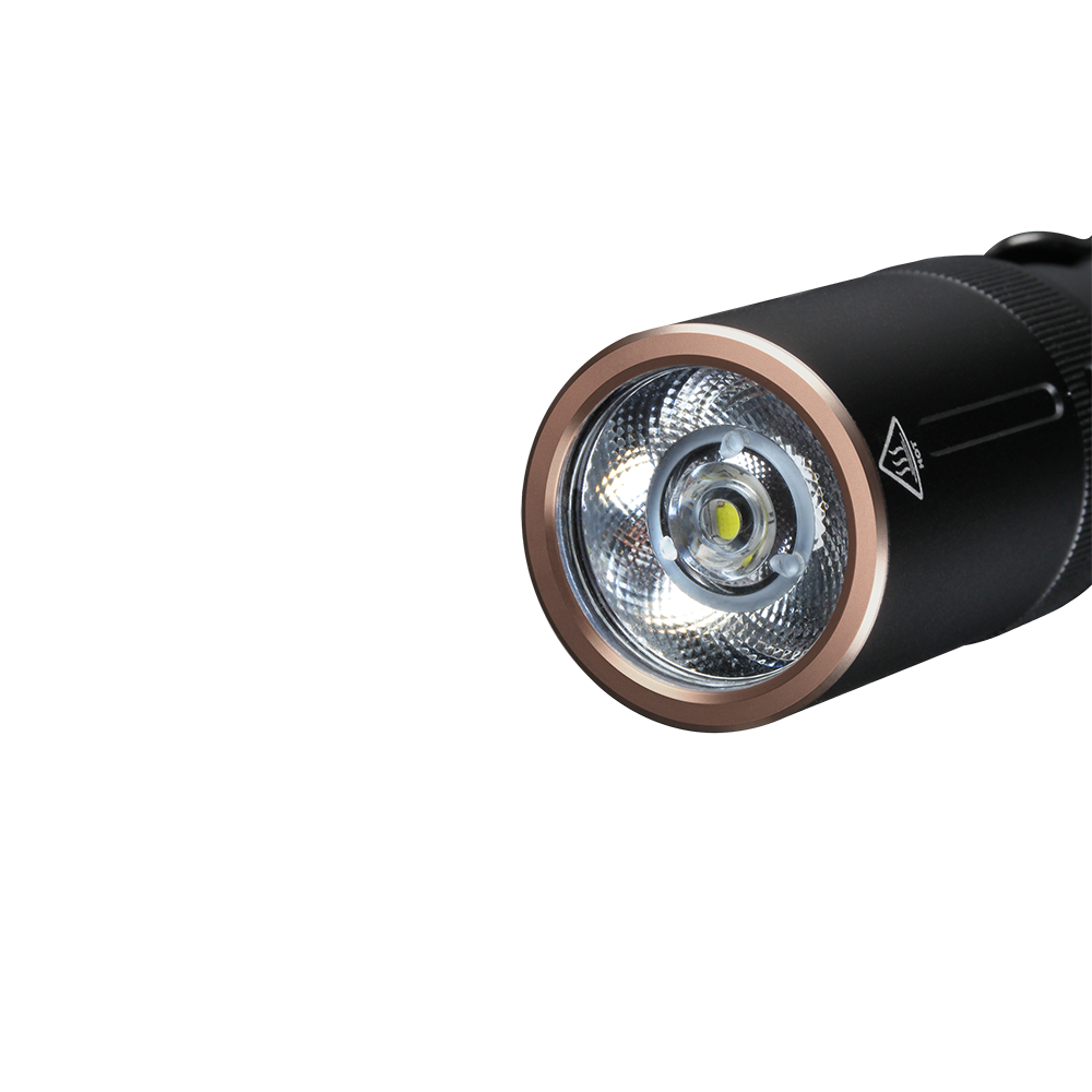 К слову, здесь есть опция защиты от переполюсовки элементов питания. Кроме того, модель защищена от перегревания. При работе фонарь накапливает много тепловой энергии, за счёт чего могут быть проблемы. Но Fenix E20 V2.0 это не грозит, так как при повышении температуры выше установленной нормы яркость сразу же снижается. Так, когда температура превысит 58 градусов, яркость начнёт уменьшаться на один процент каждую секунду. И так, пока не опустится до Среднего режима. Корпус охладится, и потом снова яркость будет расти каждые пять секунд до Максимального режима.