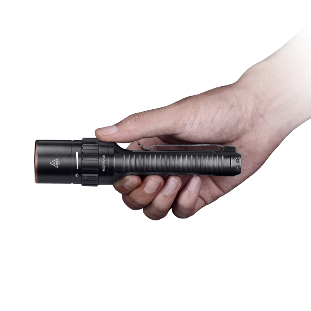 Управление всеми рабочими режимами в этой модели реализовано иначе, чем для всех других фонарей бренда Fenix. В головной части корпуса сделано широкое поворотное кольцо. Оно работает механически и не чувствительно к воздействию магнитов, а потому абсолютно безопасно как в использовании, так и для транспортировки в туристическом рюкзаке вместе с другим снаряжением.