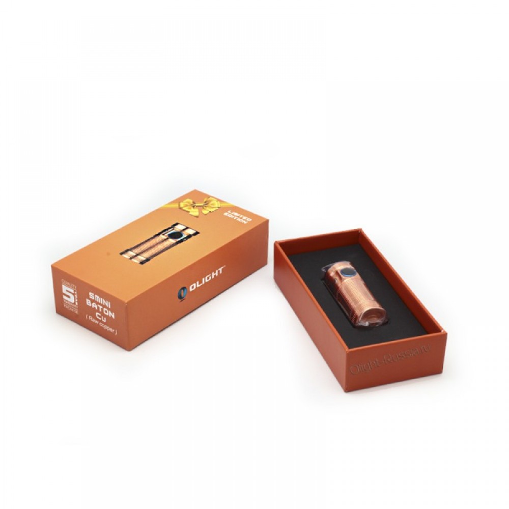 Комплектация: фонарь Olight S mini-Cu Copper, батарейка CR123A 1600 mAh, подарочная упаковка, инструкция.