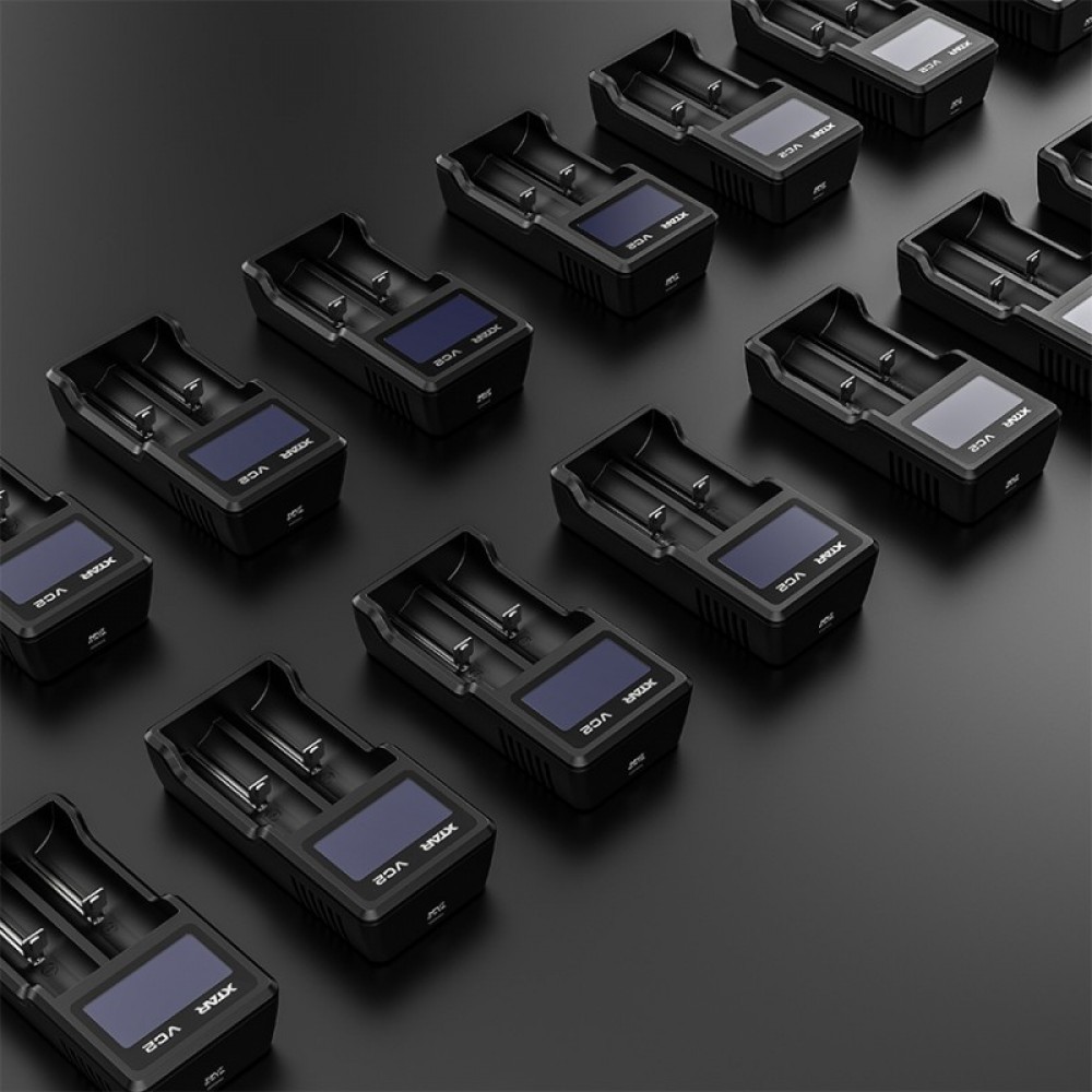 Зарядное интеллектуальное устройство XTAR VC2 с LCD дисплеем на 2 независимыми каналами, для зарядки любых Li-ion аккумуляторов. Большой высокоинформативный LCD дисплей отображает в реальном времени тип аккумулятора, напряжение заряда, ток заряда и емкость аккумулятора на текущий момент.