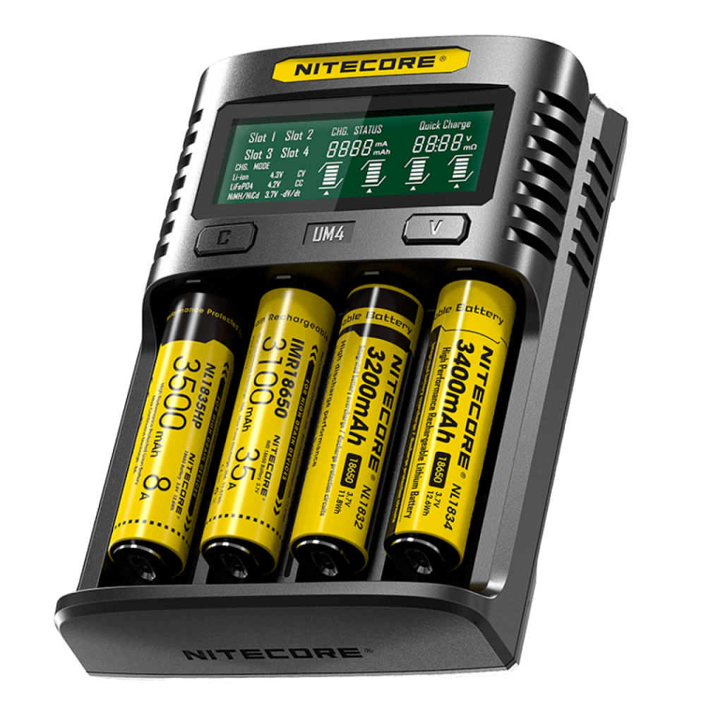 UM4 совместимо с перезаряжаемыми литий-ионными аккумуляторами 3.6V, 3.7V и 3.8V, перезаряжаемыми элементами питания Ni-MH / Ni-Cd 1.2V и LiFePO4 аккумуляторами 3.2V.